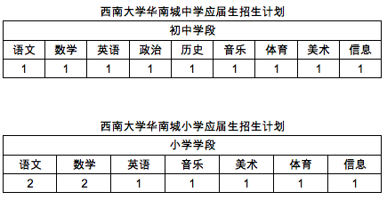 2018年西南大学华南城中学、华南城小学计划招聘新教师计划如下: