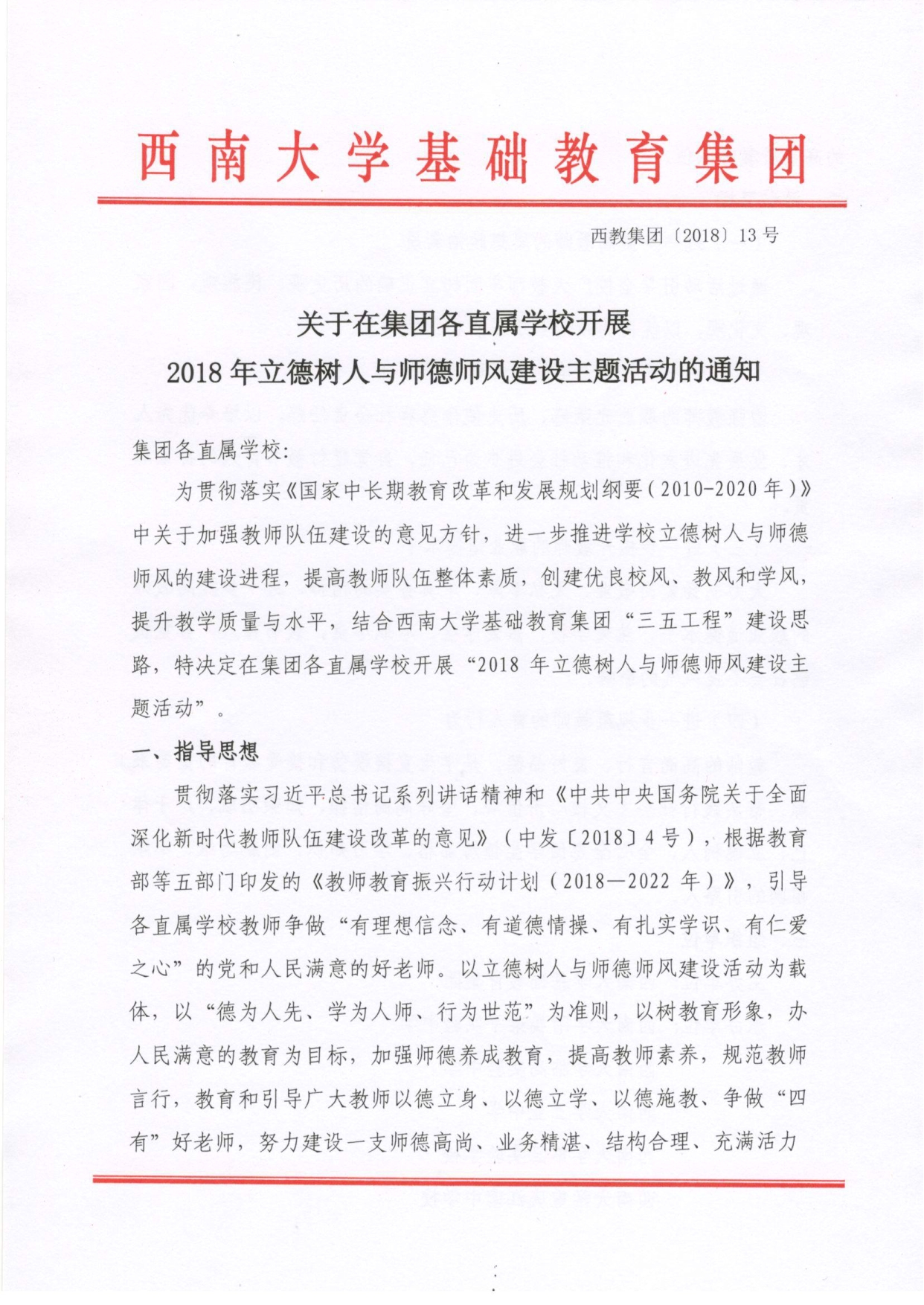 关于在集团各直属学校开展2018年立德树人与师德师风建设主题活动的通知