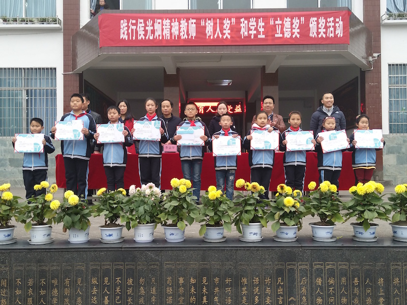 为进一步贯彻落实西南大学与四川长宁县签署的科教合作协议,共创共建“西南大学侯光炯小学”,宣传宣扬侯光炯精神,弘扬正能量,创建和谐美好教育环境,通过侯光炯精神激励优秀教师和优秀学生,2017年12月28日,西南大学基础教育集团在长宁竹海小学(西南大学侯光炯小学)举行践行侯光炯精神教师“树人奖”和学生“立德奖”颁奖仪式。长宁县副县长李炼,西南大学基础教育集团副总经理游伟、长宁县教体文广局副局长李金华、西南大学基础教育集团总经理助理张静以及竹海小学的全体领导和师生共同出席了颁奖仪式。大会由竹海小学校长周瑞金主持。